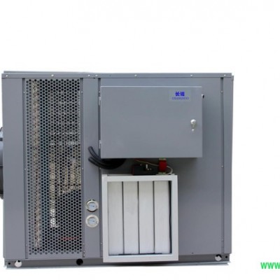 长诺工业抽湿机利用冷冻干燥的原理,把潮湿空气吸入蒸发器降到露点温度以下,使空气中的气态水凝结成水珠分离,再