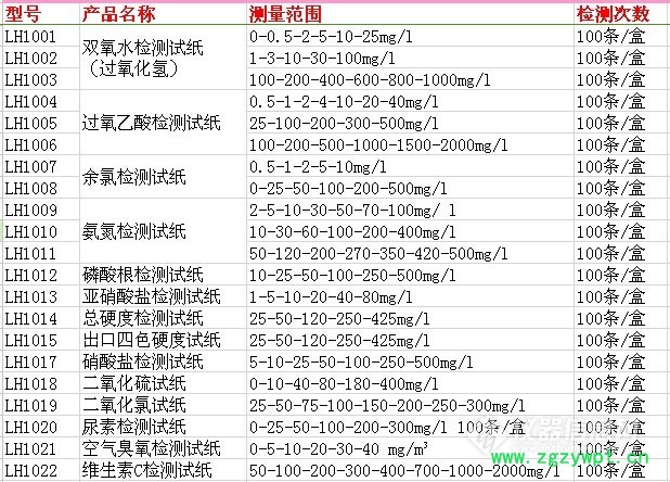 检测范围:0-0.5-2-5-10-25mg/l H2O2