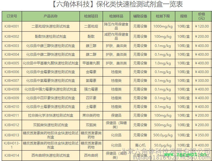 六角体科技KJBH021 化妆品重金属汞检测试剂盒 保化类产品汞试剂盒 化妆品重金属检测试剂盒 保健品检测试剂盒