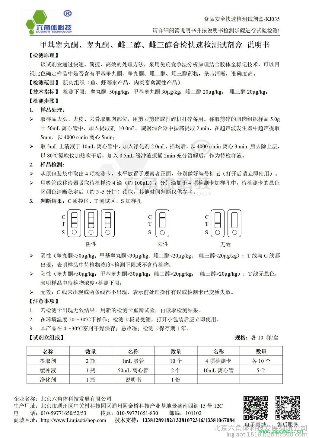 | 检测下限 | 睾丸酮50μg/kg 甲基睾丸酮30μg/kg |