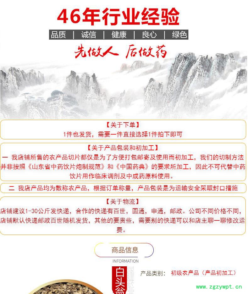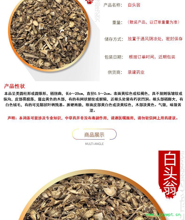 【录建药业】新货白头翁1000克 产地直销 重在品质 过筛无杂质 味道浓郁 药劲十足 规格齐全 批发零售抓方打粉