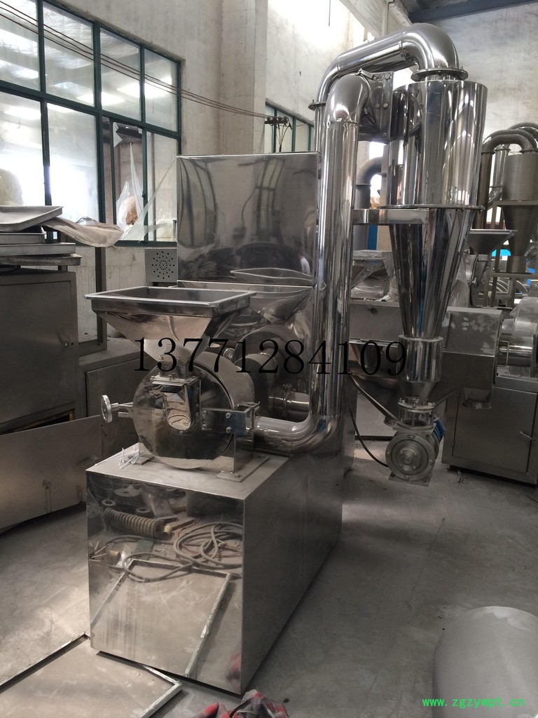 中草药粉碎机组,是本厂消化国外先进产品的优点,按我国国情设计研制的。该机具有技术性能稳定。产量高。外型美观。使用范围广等特点。本机对于粉碎干燥纤维性物料具有理想的效果。与国内其它机型相比,制品温度低。粒度均匀,特别使用于食糖。塑料粉末。中药材等热敏性物料的粉碎。