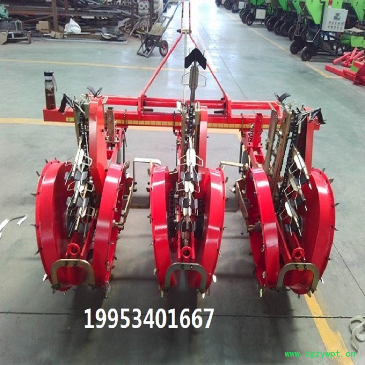 该机采用双盘旋压,偏心盘和多连杆联动带动栽苗移植为一体的科学先进的系统。具有整机结构紧凑,性能稳定,配合优良,一机多用等特点。根据配备的牵引动力大小和在牵引架上安装栽种总成的个数可实现1---4行的栽植作业,既能实现大面积平原农场高效率栽植,也能解决大棚、丘岭钵体秧苗栽植作业。