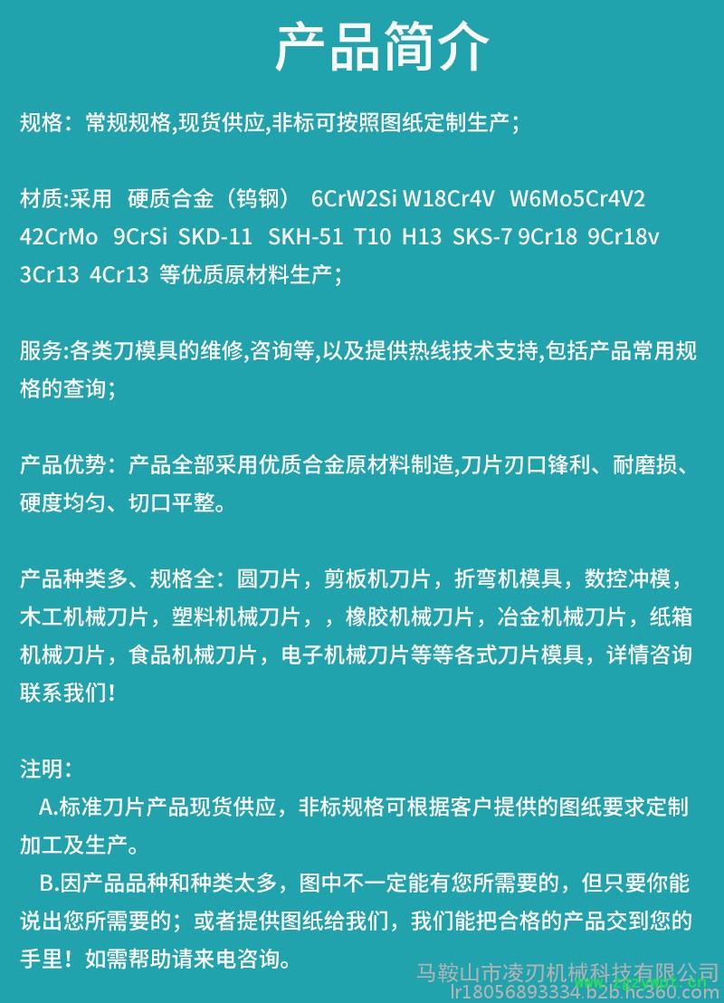 撕碎机刀片,粉碎机刀片,机床导轨,圆刀片,折弯机模具,食品机械刀片,油墨刮刀,分条机...