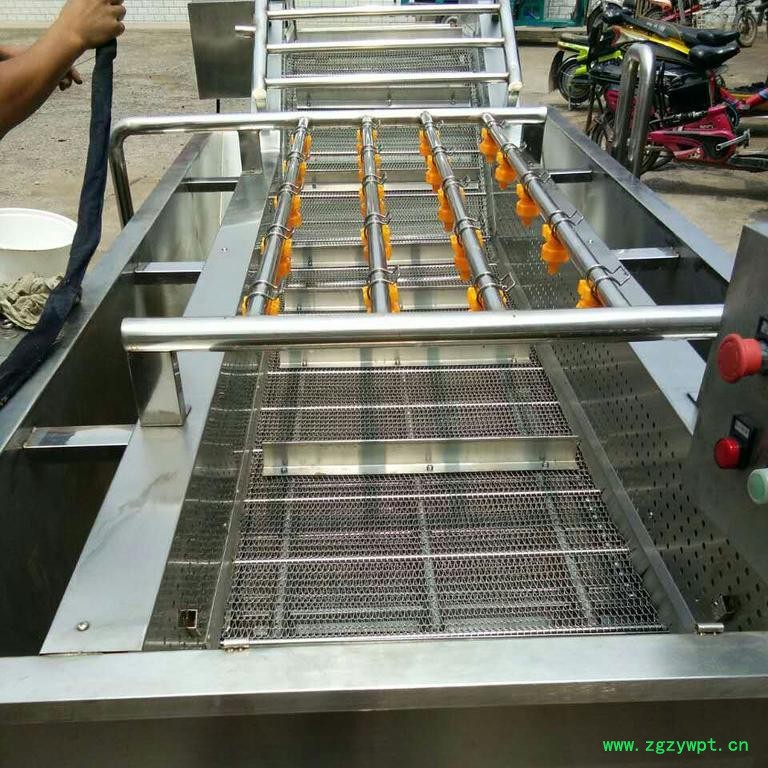 设备中设有气泡发生装置,使物料呈翻滚状态,去除产品表面农残的功效,同时可加入适量的药剂,进行消毒固色。漂浮物可以从溢流槽溢出,沉淀物从排污口排出,以达到清洗的目的。具有洗洁净高、节能、节水、设备稳定可靠等特点。增加臭氧发生装置去除农药残留及杀菌的目的。该清洗机适用于各类果蔬、水产品及中草药的清洗及净菜深加工生产线中及中央厨房配送行业中。