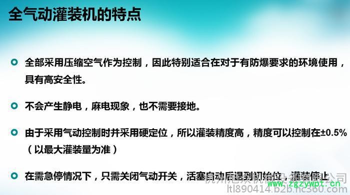 2、由于采用气动控制,并采用机械定位,所以灌装精度高,精度可以控制在±1%