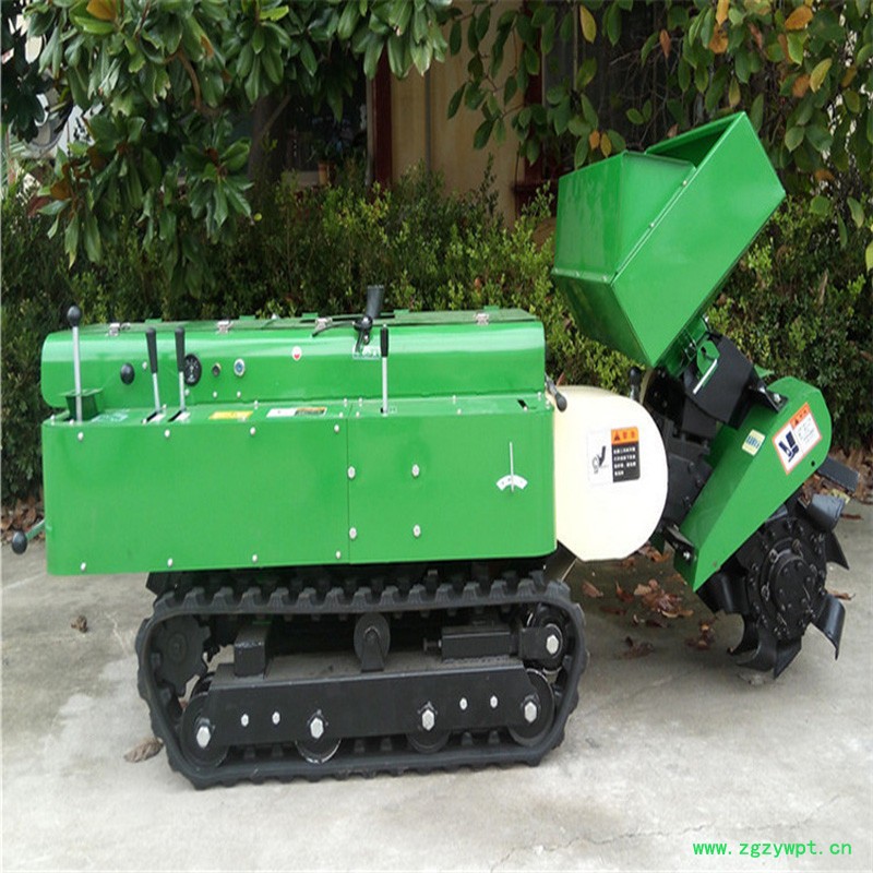 多功能 履带式开沟施肥机安装上不同的配件可以进行单独旋耕、回填、单独开沟、施肥、也可混合搭配使用。产品结实耐用,性能优越,操作方便.耐用:机身加厚,密,履带式行走,可进行原地转向。刀具都是加厚75号猛钢锻造,非常耐磨耐用,工作效率高,该机器体积小,操作灵便,可原地转向,分高低6个前进档位和2个倒退档位。
