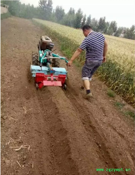 广泛适用于山区、丘陵,平原及大棚,果园等。打沟及田园管理提高很大的工作效率,是农民朋友致富路上好帮手。有利于争取农时,提高工效,并能充分利用拖拉机的功率。但对残茬、杂草的覆盖能力较差,耕深较浅(旱耕12~16厘米;水耕14~18厘米),能量消耗较大。主要用于水稻田和蔬菜地,也用于果园中耕。重型横轴式旋耕机的耕深可达20~25厘米,多用于开垦灌木地、沼泽地和草荒地的耕作。工作部件(见图)包括旋耕刀辊和按多头螺线均匀配置的若干把切土刀片,由拖拉机动力输出轴通过传动装置驱动,常用转速为190~280转分。刀辊的旋转方向通常与拖拉机轮子转动的方向一致!