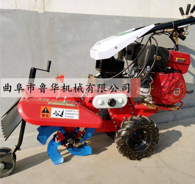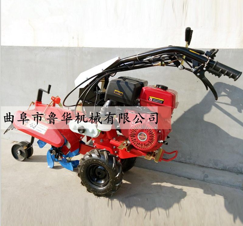本机器包括机架、可调高低扶手,机架上设有(风冷或水冷)柴油机或汽油机、机架和扶手上设置有变速箱,变速箱的输出轴上设置有能够沿轴移动的驱动轮或链轨.传动方式主要有:全齿轮传动、皮带传动、链条传动三种传动方式.该机具有重量轻,油耗低、相对功率大,结构紧凑、机动性强、操纵轻便灵活的特点。可爬坡、越埂、阶梯性强。广泛适用于平原、山区、丘陵的旱地、水田、果园、菜地、烟地的深旋耕、浅旋耕、犁耕。配上相应机具可进行旱地旋耕、水田旋耕、抽水、开沟、喷淋、喷药除草碎土等作业,还可牵引拖车进行短途运输,是大中型农机无法**的多功能田园管理机,工作稳定可靠、使用寿命长、维修方便等特点。是进入农民家庭田园管理机。