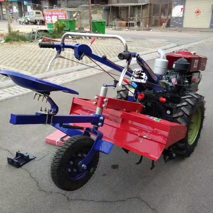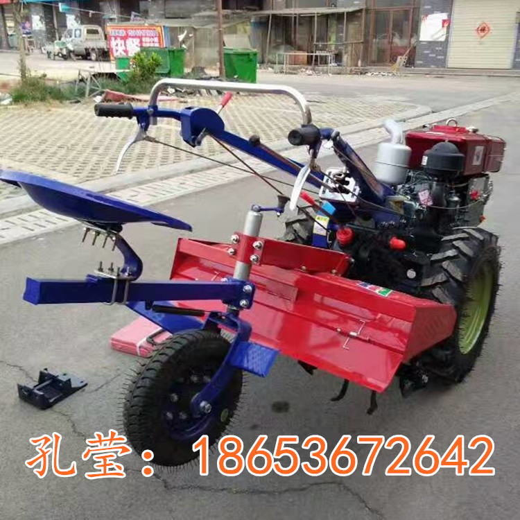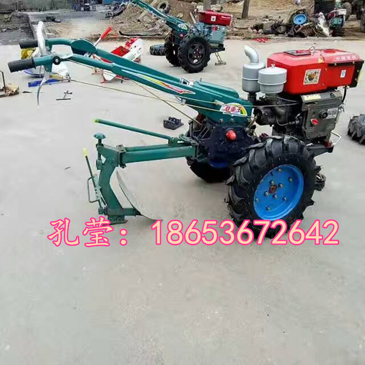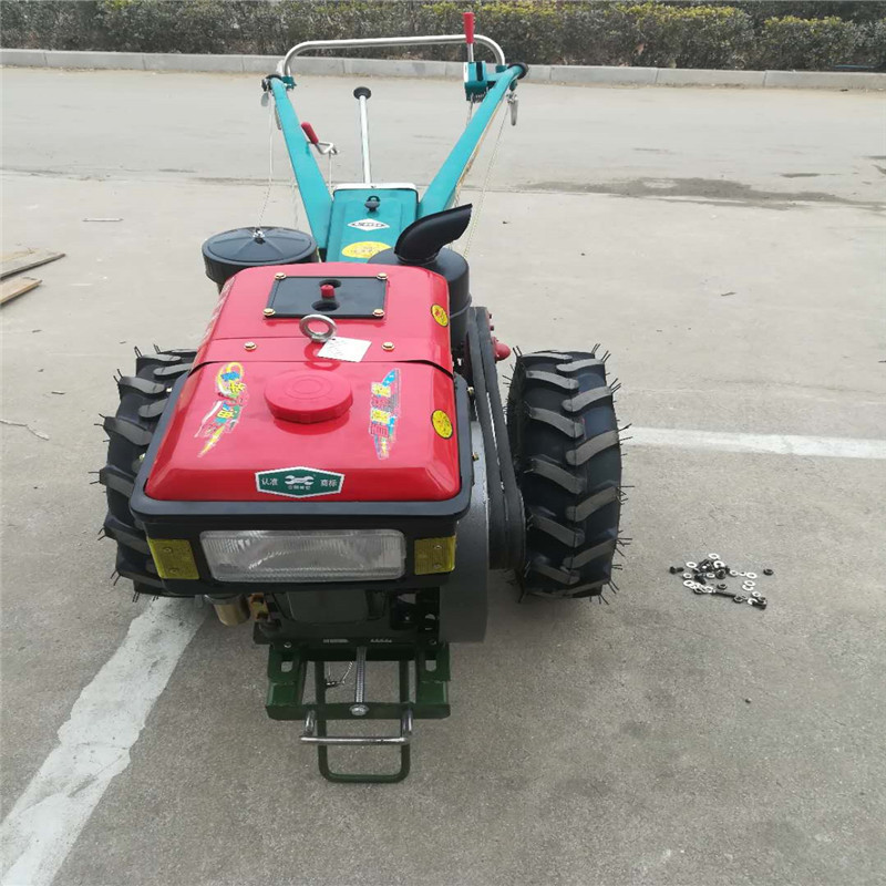 手扶拖拉机具有重量轻、机型小巧、操作灵活、适应性强等优点,,可以配单铧犁,旋耕机,播种机。可进行犁耕、旋耕、平整、碎土等多种田间作业,配上拖车,还可进行短途运输。田间作业时,由于车速较慢,一般不易发生事故,而从事道路运输时,则应特别注意转向和连接两个方面的安全问题。广泛适用于山区、丘陵,平原及大棚,果园等。对玉米、小麦、大豆、地瓜、大姜、大葱、芋头、土豆、黄烟、果园等农作物的耕种,打沟及田园管理提高很大的工作效率,是农民朋友致富路上好帮手。其中手把可360度旋转,操作非常灵活。而且挂档方便,不会跳档,挂错,脱档。