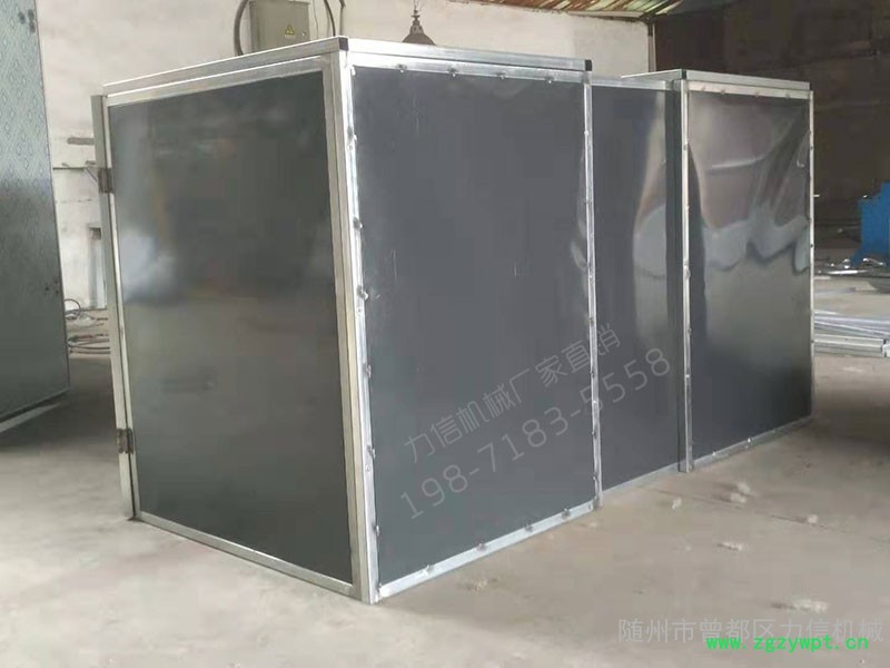 随州力信机械设计生产的香菇烘干机采用了热风多层利用的原理。主机内部由上下多层不锈钢网带组成,网带靠下面的撑杆支撑着,撑杆材质采用不锈钢无缝管,两边有链条带动,链条上边设有物料挡板,防止物料掉入轨道中间,网带固定在撑杆上。通过送风机将热风炉出来的纯净热风送到烘干机底部,先穿过下层网带与将干物料进行热交换带走部分水分,以此向上逐层穿过各层网带,与物料形成逆流热交换,到达上层与湿物料热交换后,湿空气基本达到饱和,利用排湿风机将湿空气通过排湿口排出室外。采用强制排湿风量,多层带式循环翻转,逐层烘干物料,充分利用热风,烘干脱水迅速,运行稳定,有效降低能耗。