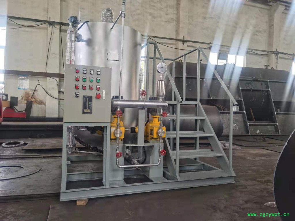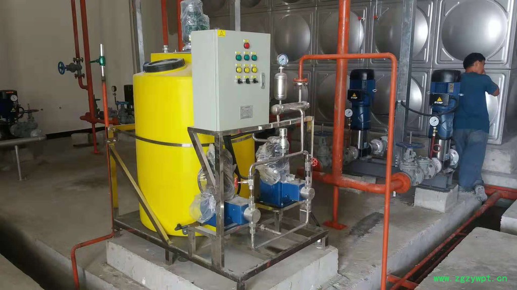加药装置开发生产的一款自动加药产品,主要用于电厂的锅炉给水、循环水、加联氨、磷酸盐等处理,也可用于石油、化工、环保、供水系统等行业。单元组合式加药装置,主要有溶液箱、计量泵、过滤器、安全阀、止回阀、压力表、缓冲罐、液位计、控制柜等组成一体化安装在一个底座上。用户只需将组合式加药装置安放在加药间,将进水口、出药口接好并接通电源即可启动投入运行,这种工厂化的整套装置,可大大减少设计和现场施工的工作量,对整机系统的质量、安全和现场投运提供了可靠的保证。