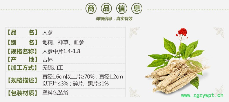 【满298元包邮】人参中片1.4-1.8 500克1袋