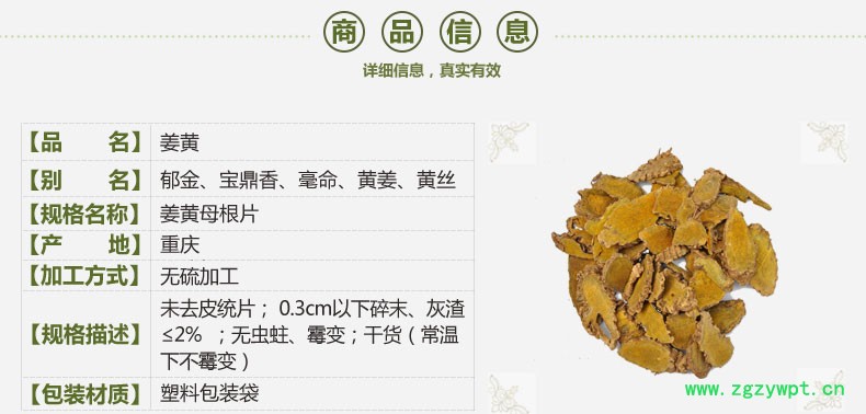 规格等级:姜黄母根片