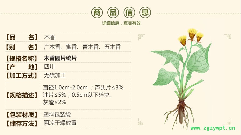 规格等级:木香圆片统片