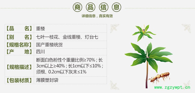 【满298元包邮】国产重楼统货野生重楼 七叶一枝花 四川产地 500克1袋