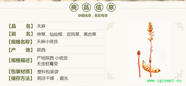 规格等级:天麻小统货