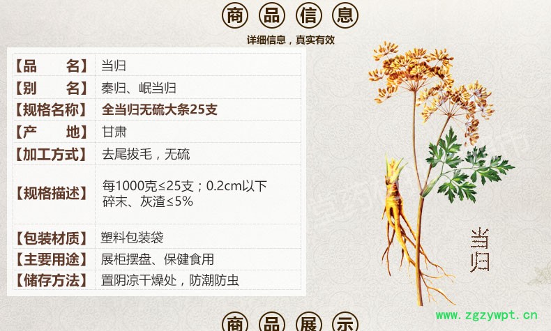 【满298元包邮】当归个全当归大条25支 水洗 1公斤1袋
