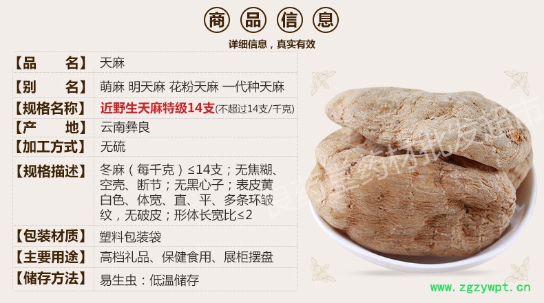 【满298元包邮】近野生天麻特级14左右支 1公斤1袋