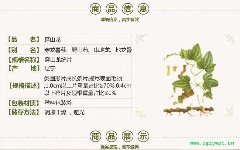 规格等级:穿山龙统片