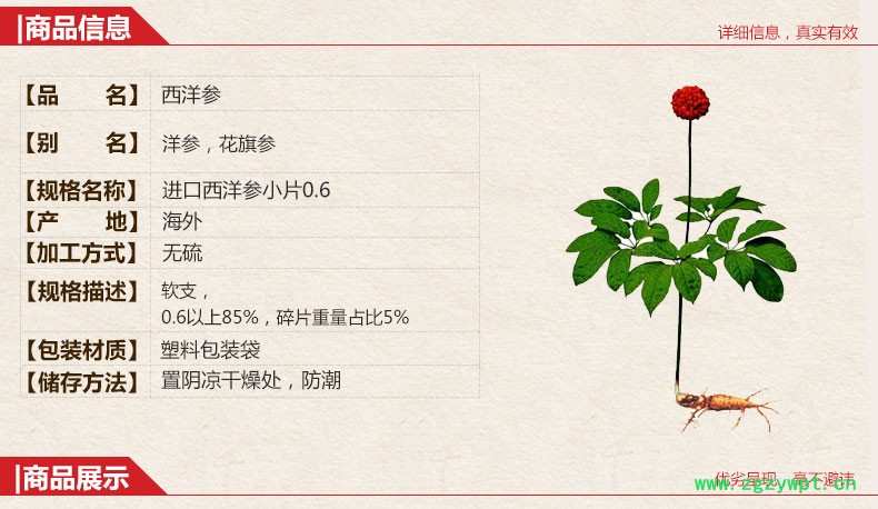 【满298元包邮】西洋参 西洋参0.6片 产地 吉林