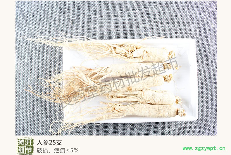 【满298元包邮】人参 生晒参25支 产地 吉林省白山市 1公斤1袋