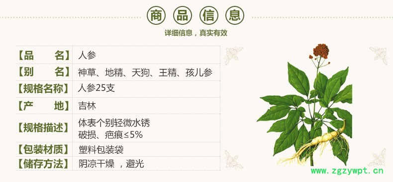 【满298元包邮】人参 生晒参25支 产地 吉林省白山市 1公斤1袋