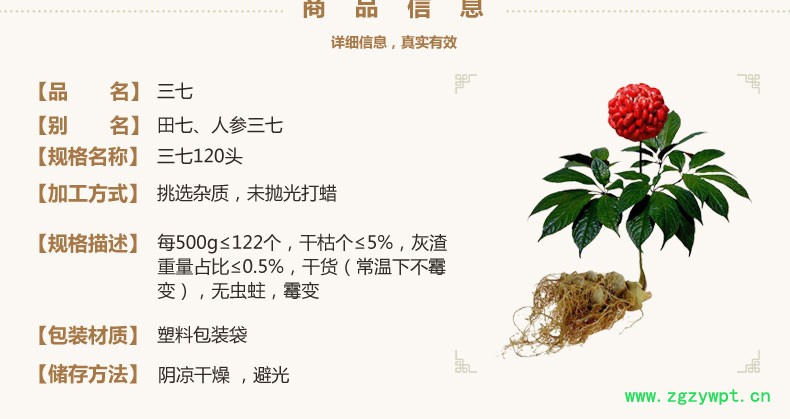 规格等级:三七120头