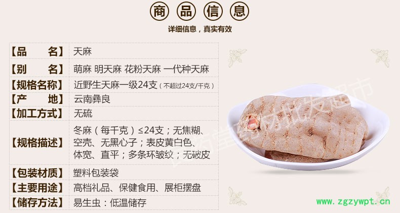 【满298元包邮】近野生天麻一级24左右支 1公斤1袋
