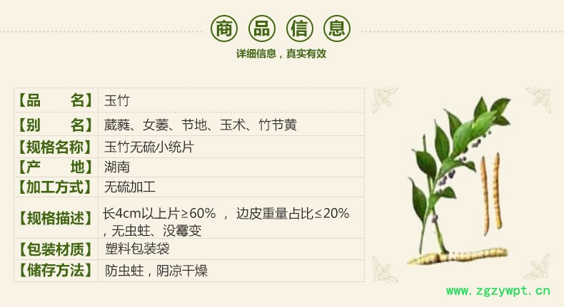 规格等级:玉竹无硫小统片