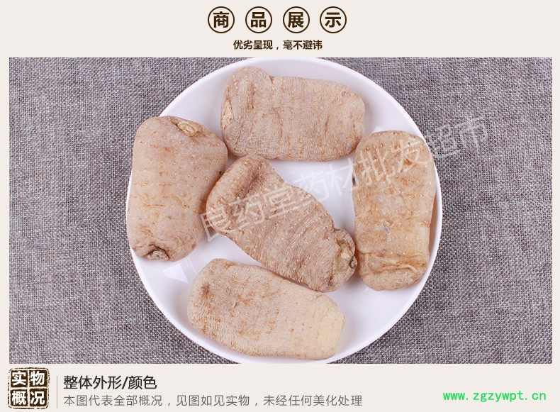 形态: 表皮黄白色、体宽、直、平、多..