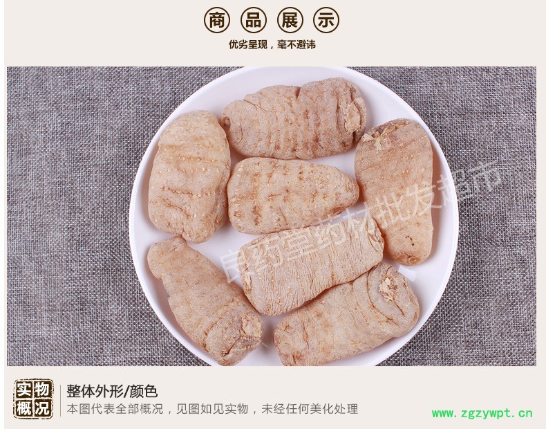 形态: 表皮黄白色、体宽、直、平、多..