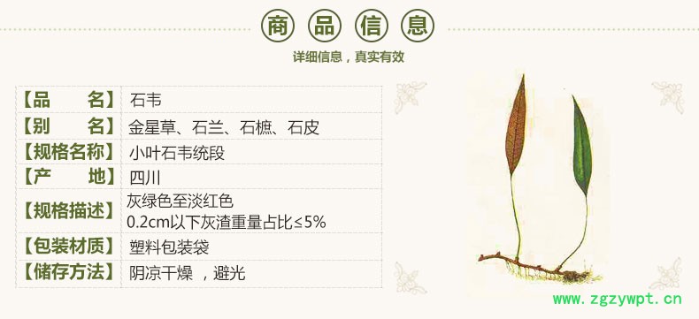【满298元包邮】石苇小叶石韦统段 1公斤1袋产地四川