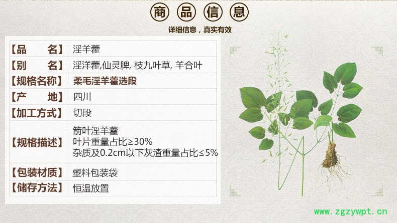 【满298元包邮】淫羊藿柔毛淫羊藿选段 1公斤1袋