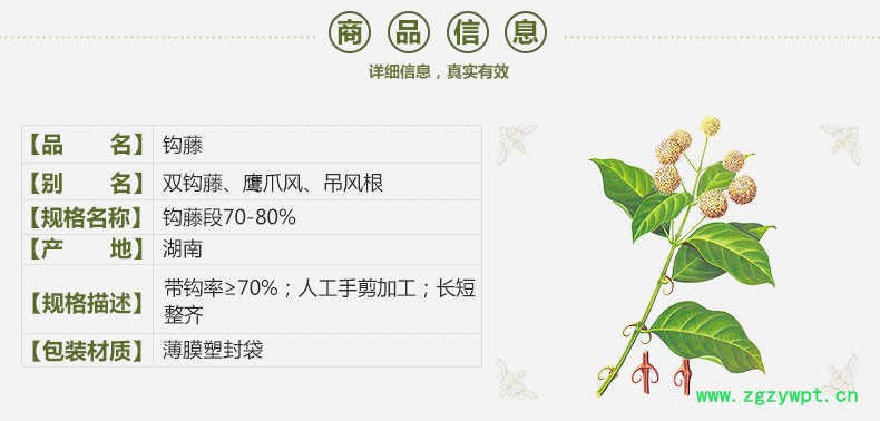 【满298元包邮】钩藤选段 钩藤 1000克1袋 产地湖南