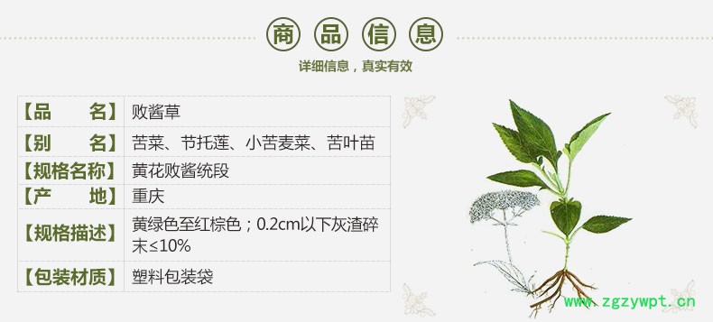 规格等级:黄花败酱统段