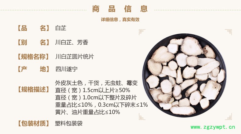 【满298元包邮】白芷川白芷圆片统片 道地四川特产香味浓 1公斤1袋