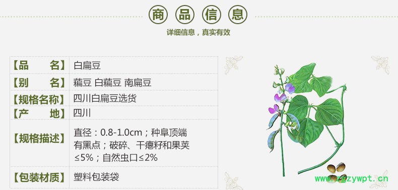 【满298元包邮】白扁豆 四川大白扁豆选货黑眉扁豆 产地 四川省 一公斤一袋