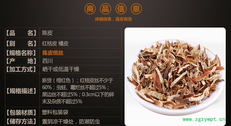 规格等级:陈皮统丝