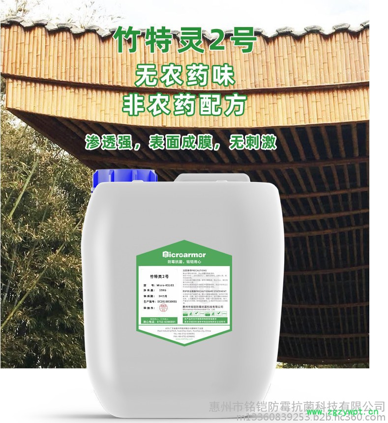 竹特灵2号Micro-KS102是集多种防霉剂、抗菌剂、抗藻剂复合而成,是一种竹材高浓缩防霉剂,直接兑水使用即可,使用非常方便。本产品与竹纤维具有天然亲和力,能与纤维的羟基形成共价键,牢牢固定在木材表面**渗透能力,增加竹纤维对药剂的吸收,干燥后在能在竹材表面形成保护膜。长时间防护木材不发霉。经过竹特灵处理的竹材及竹制品,能够在潮湿环境下保持1年以上不发霉。
