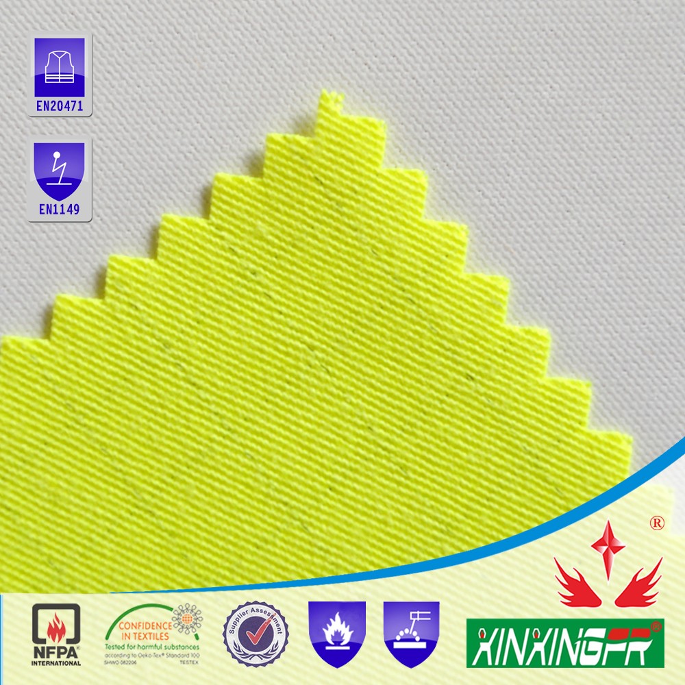 The fluorescent fabric for safety vest is durable against normal washing, non-poisonous, comfortable to wear and safe to human body.