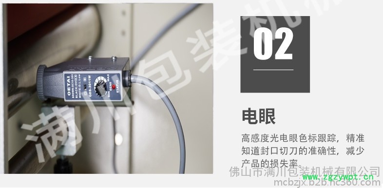 3、高感度电眼自动跟踪,设定后无需手动调整,封切尺寸,位置准确,封口牢固美观。