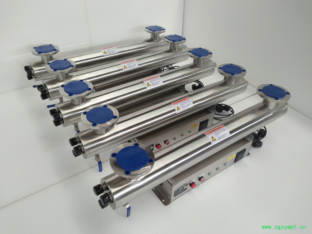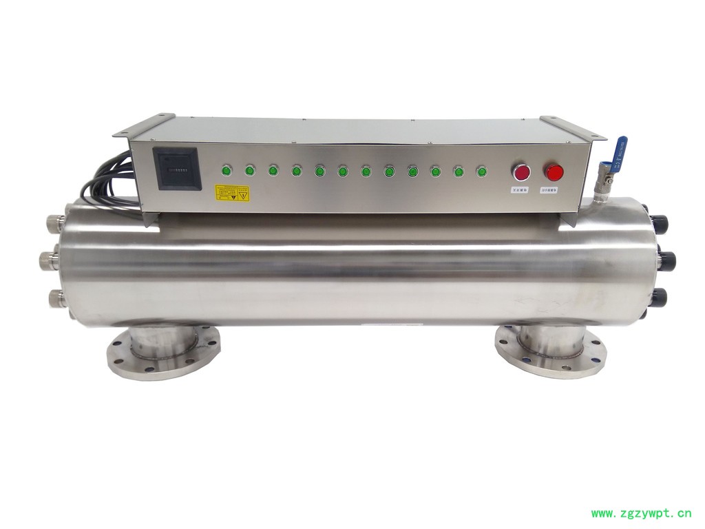 紫外线消毒器装置,采用**的紫外线杀菌灯,简体内壁经过特殊处理的食品级304不锈钢,使经过预处理的水流过筒体时受到波长253.7nm紫外线足够量的照射,具有良好的杀菌效果
