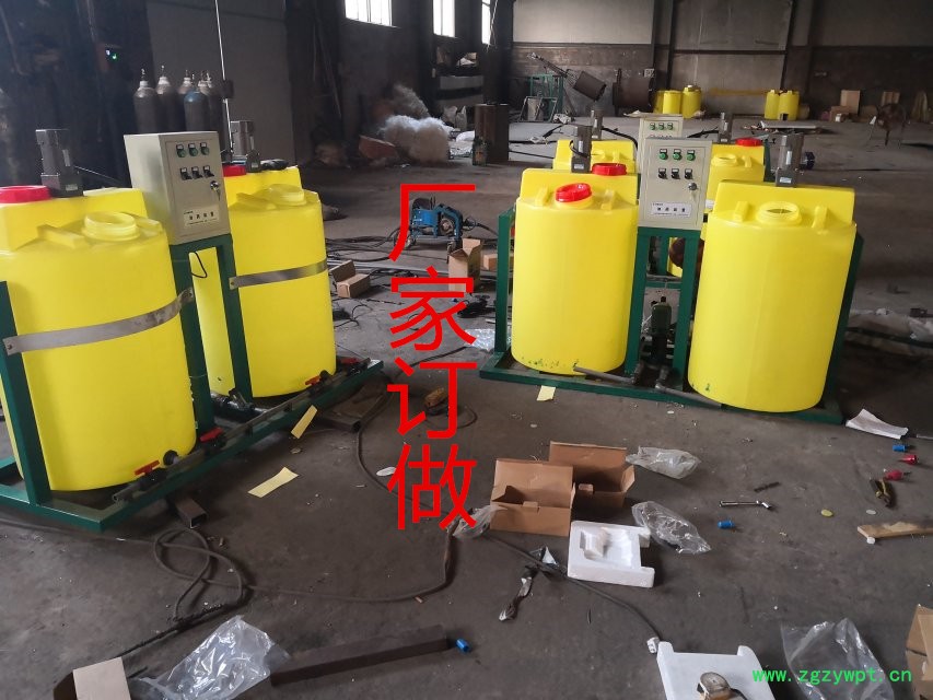 (2)开启搅拌机,使溶解槽内的药剂充分混合溶解,然后打开溶液箱的放液阀,以供设备使用。