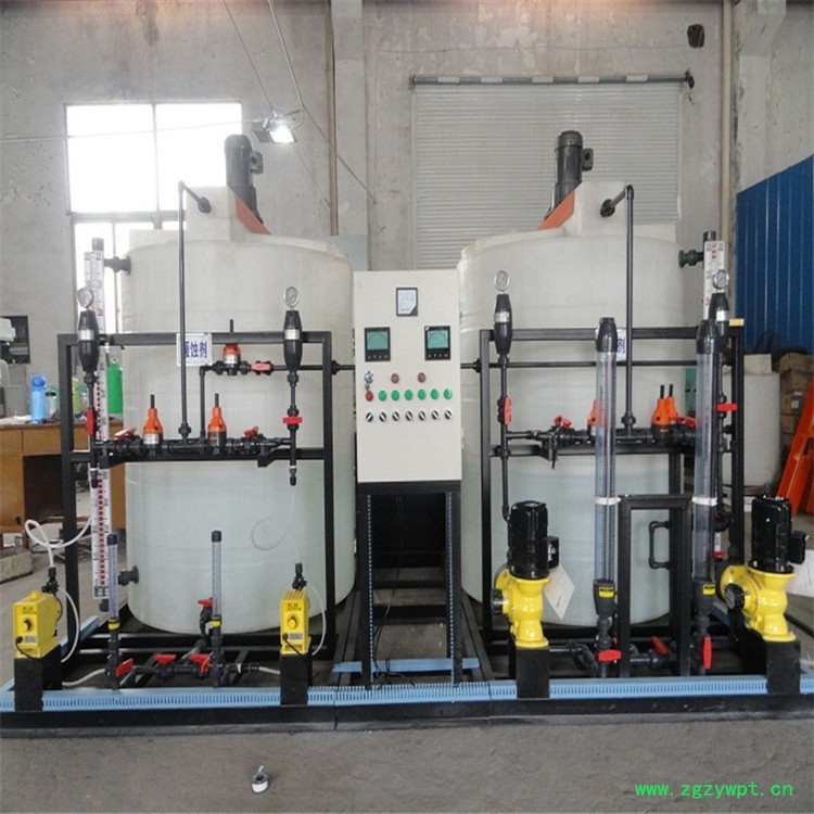 c、加药装置具有能报警功能:高、低液位报警、加药泵的开启显示、突然停止报警。