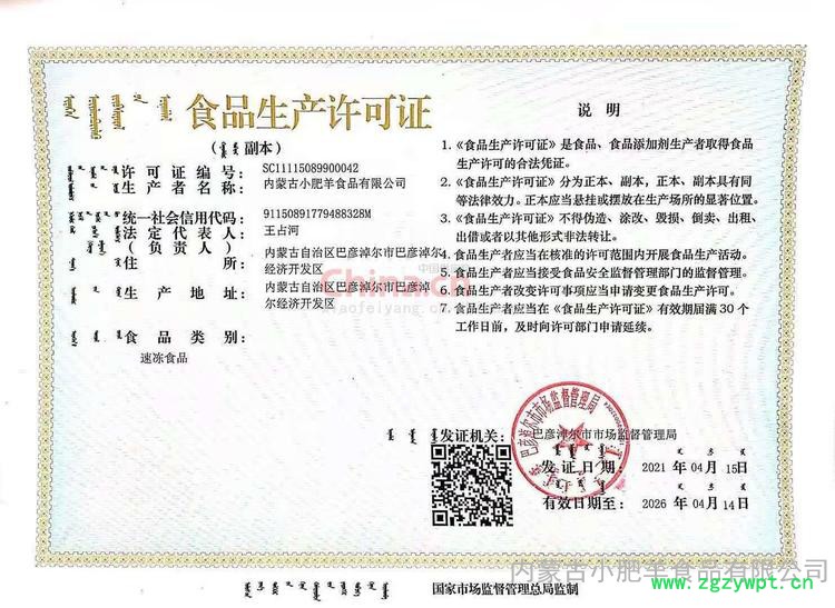 | 生产厂家 | 内蒙古小肥羊食品有限公司 |