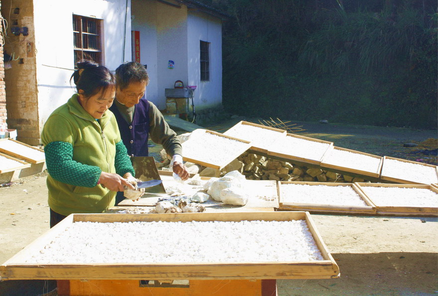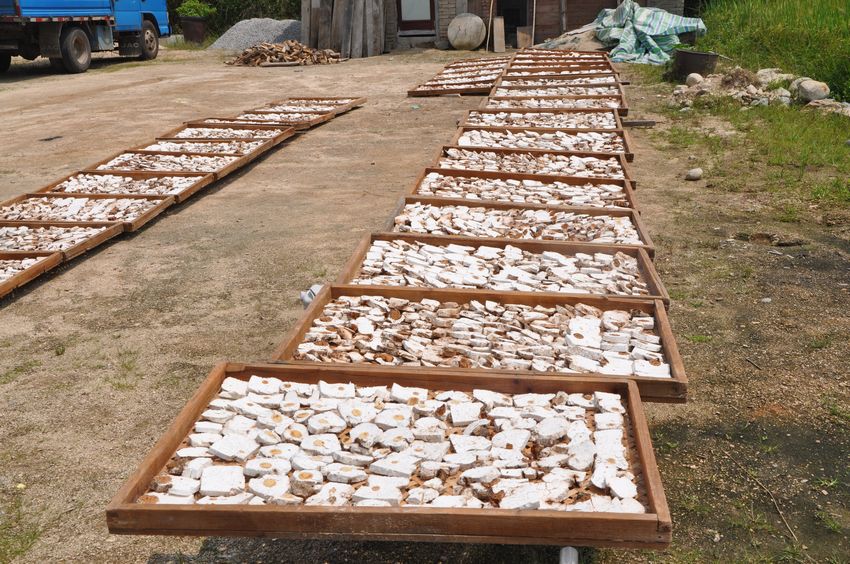 茯苓一片一片的切开 然后直接晒干