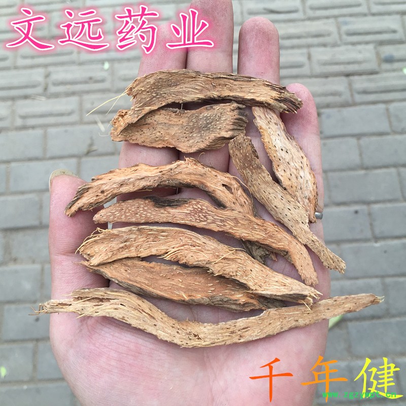【性状颜色】表面红棕色或黄棕色,粗糙,有多数扭曲的纵沟纹及黄白色的纤维束。