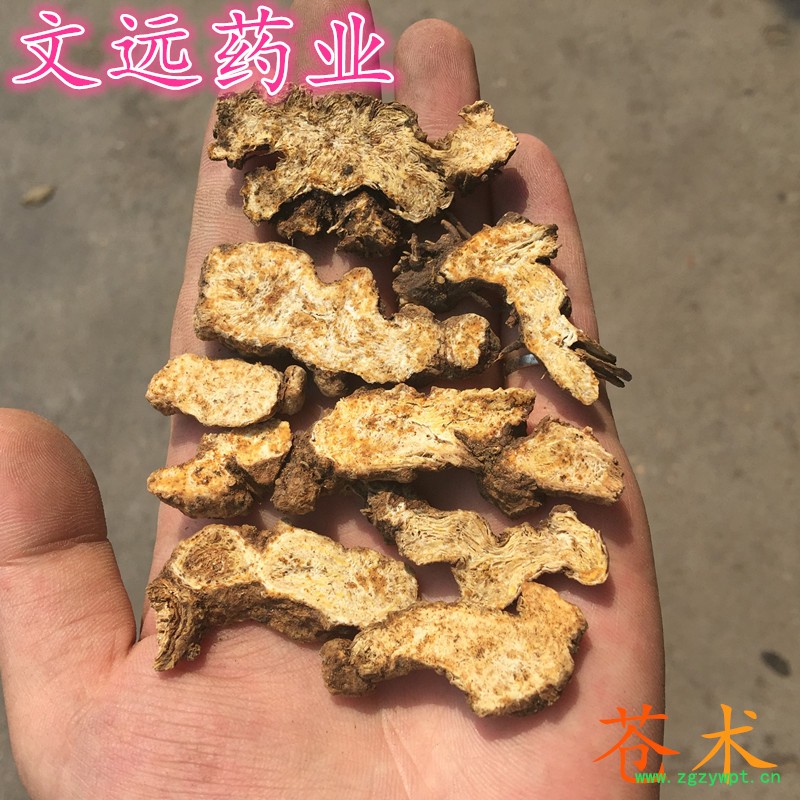 性状: 此品呈不规则圆形,不规则长条,片厚3mm左右,表面灰棕色,断面瓷实,灰白中有不规则橙黄色和棕红色油室,质坚实。气香特异,味微甘,辛,苦。此品是地产家种的,才引进的苍术品种,不是野生的。所以价格便宜,但绝对没有加重粉,请放心购买。