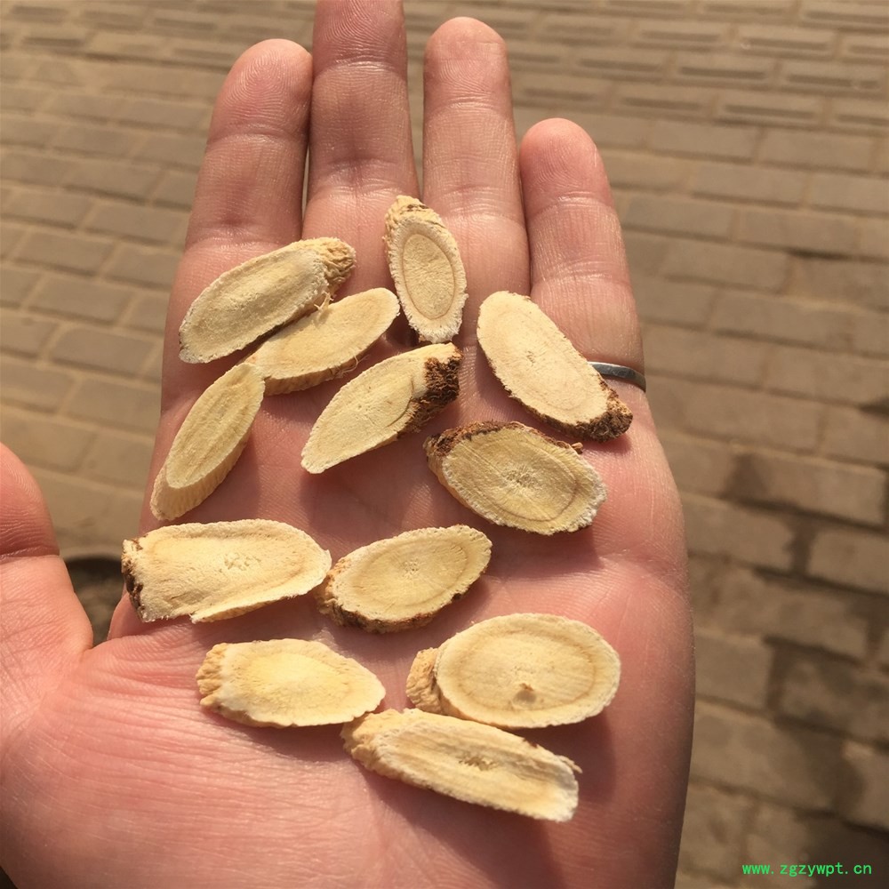 颜色性状:本品为浅黄色圆片状,表面浅黄色,断面浅黄色,味甘,性微温,归肝、脾、肺、肾经。